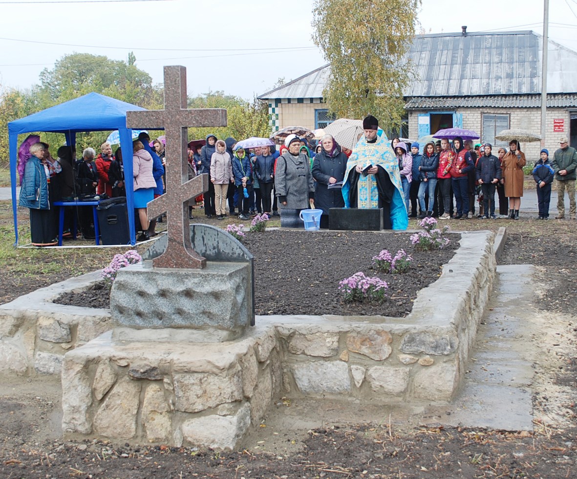 Далі настоятель Гродівського Свято-Успенського храму отець Максим освятив пам’ятний хрест, і до нього поклали квіти.
